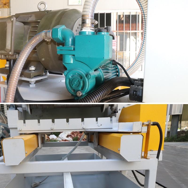 5. La máquina incorpora un tanque de recirculación de agua y un sistema de filtración para facilitar el mantenimiento. Esto no solo enfría las cuchillas para evitar el sobrecalentamiento y el agrietamiento de la piedra, sino que también suprime eficazmente el polvo, mejorando el entorno de trabajo y cumpliendo con las normas ambientales.