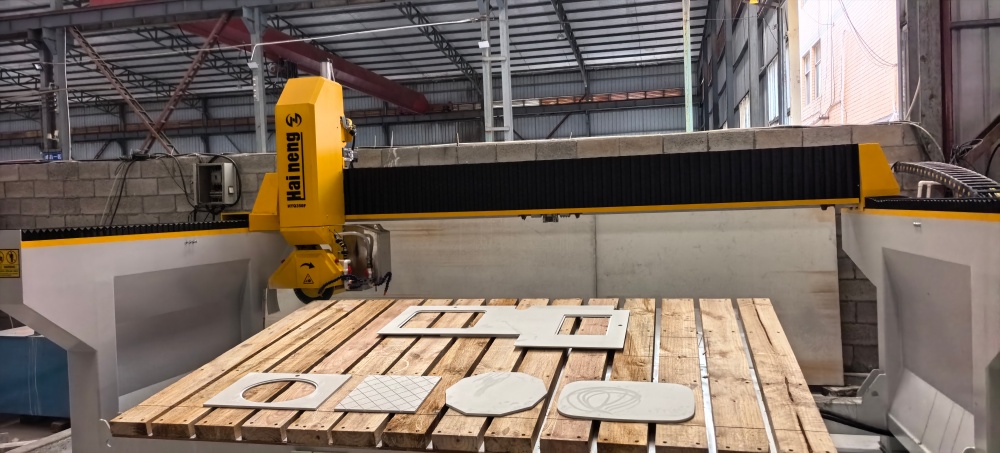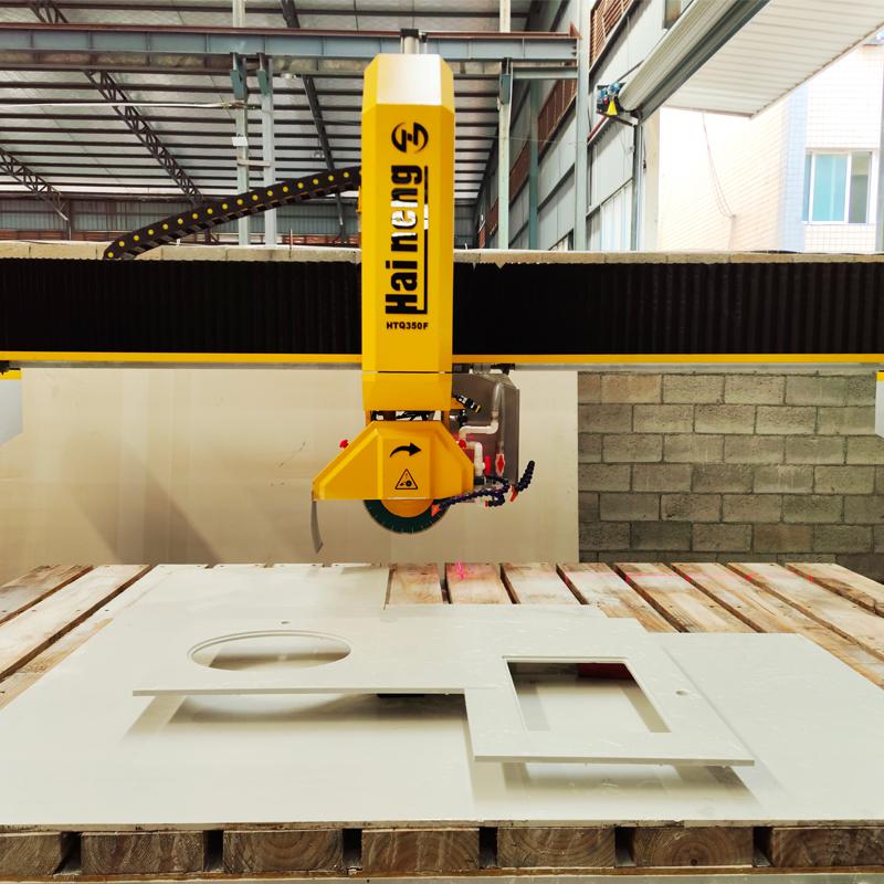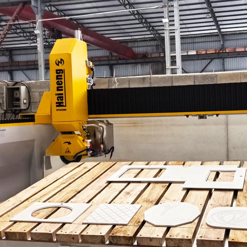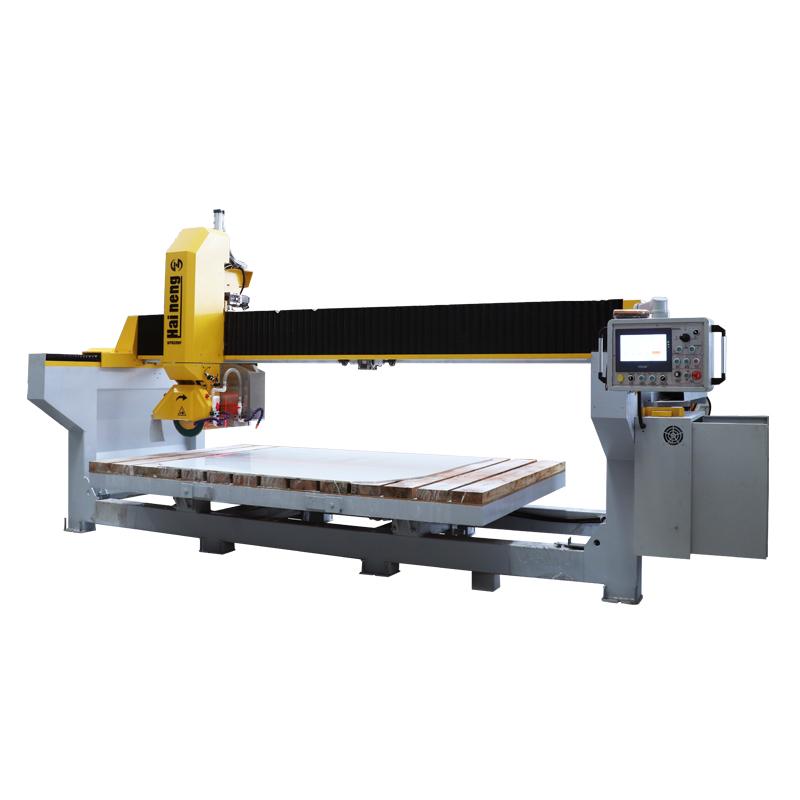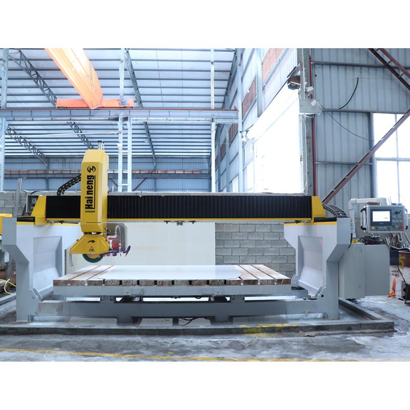 La sierra de puente de 4 ejes int Combina corte, perfilado, biselado y tensado de malla en una sola unidad, ofreciendo una solución de procesamiento eficiente, precisa e inteligente para materiales de piedra naturales y artificiales, incluidos granito, mármol y cuarzo.